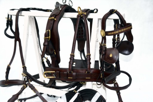 UPRZĄŻ SINGLOWA Roz. full Uprząż wykona w całości bardzo dobrej selekcjonowanej skóry licowej ,bardzo miękkiej i miłej w dotyku ,we wszystkich elementach uprzęży wszyta taśma ,która ma zadanie wzmocnienie skóry. Okucia wykonane ze stali nie rdzewnej ., jedyna taka uprząż na rynku.