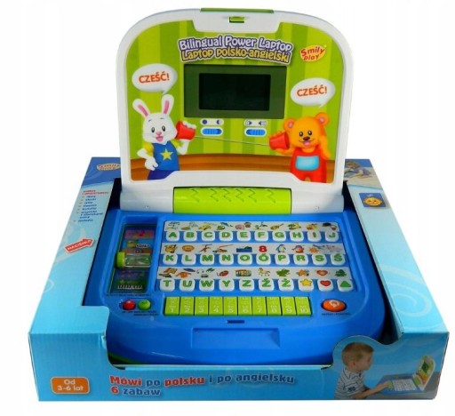 To edukacyjna zabawka, która mówi po polsku i po angielsku. Laptop jest interaktywną zabawką wspomagającą rozwój intelektualny malucha. Rekomendowana dla dzieci w wieku pomiędzy 3 a 6 rokiem życia.