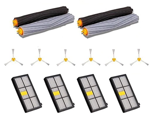 - Zestaw do iRobot Roomba serii 800 / 900 to dodatkowy zestaw akcesoriów, który pozwala na utrzymanie odkurzacza w wysokiej wydajności. Zestaw składający się z trzech czarnych gumowych szczotek i trzech szarych gumowych szczotek, które są skuteczne w usuwaniu kurzu, brudu i włosów z podłóg twardych i dywanów.