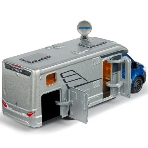 Majorette Seria Grand:solidne, metalowe pojazdy teraz w nowym, większym wydaniu, model premium Hymer B-Class z elementami ruchomymi i otwieranymi zapewnia ekscytującą zabawę.OFICJALNY PRODUKT HYMER I MERCEDES BENZ: licencjonowany, zabawkowy kamper, drobiazgowo odwzorowuje pełnowymiarowy dom na kółkach, dostarczy dziecku moc wrażeń i wciągającą zabawę.REALISTYCZNE DETALE: Jak w prawdziwym kamperze posiada: otwierane drzwi, obrotową, rozkładaną antenę satelitarną oraz trwałe gumowe opony, dzięki którym z łatwością porusza się po każdej nawierzchni.OŚWIETLENIE WEWNĘTRZNE I ZEWNĘTRZNE: Jak w prawdziwym kamperze są tu reflektory, przytulne oświetlenie wewnątrz pojazdu i 2 autentyczne efekty dźwiękowe, działa na baterie: 2x1,5V R03/AAA (dołączone).WIELE MOŻLIWOŚCI ZABAWY: kamper w skali 1:40, długość 19 cm dopasowany do małych rączek, trafiony prezent na wakacje, urodziny czy wyprawy na kemping dla dzieci od 3 roku życia.Nowa kolekcja Grand od Majorette w większej skali 1:40, 1:43, 1:45!Odkryj wszystkie modele z serii Majorette Grandwybieraj spośród pojazdów służb ratowniczych, budowlanych czy miejskich. Dziecko zachwyci się ekscytującymi funkcjami i misternie szczegółowo odwzorowane detale gwarantują ciekawym świata dzieciom wciągającą zabawę i fascynującą rozrywkę podczas zanurzania się w pasji do motoryzacji.Samochód kempingowy Mercedes klasy B Hymer to dobry początek wakacji dla maluchów lubiących przebywać na świeżym powietrzu! Stanowi również fantastyczny dodatek do każdej kolekcji modeli samochodów. Ten oficjalnie licencjonowany model Mercedes klasy B Hymer od renomowanej marki Majorette został zaprojektowany na podstawie oryginalnego pojazdu i wyróżnia się praktycznymi funkcjami jak: otwierane drzwi, obrotowa antena i gumowe opony z bieżnikiem, dzięki którym pokona z łatwością każda nawierzchnię. Kamper Hymer B-Class Masterline ma solidną konstrukcję, która zapewnia długą żywotność. Zarówno kabina kierowcy, jak i część domowa kampera są wykonane z metalu. Pozostałe części wykonane są z tworzywa sztucznego.Kamper zachwyca dwoma różnymi a do tego autentycznymi efektami dźwiękowymi, dwoma reflektorami i imponującym oświetleniem wewnątrz pojazdu. Światła oraz realistyczne odgłosy: dźwięki natury i dźwięki silnika pojazdu uruchamiane są po naciśnięciu na maskę pojazdu, a to wszystko, aby dostarczyć dzieciom jak najwięcej chwil pełnych uśmiechu i niezapomnianej zabawy!Wymiary pojazdu: długość: 19 cm x szerokość 5,5 cm x wysokość: 7 cm. Kultowa marka Majorette od 1964 roku oferuje bogatą kolekcję zabawkowych metalowych samochodów i pasujące zestawy parkingowe o różnych motywach: od samochodów osobowych, monster trucków, pojazdów ratunkowych i budowlanych po samochody wyścigowe. Kompaktowe, metalowe samochody są idealne dla dzieci w wieku od 3 lat i aspirujących kolekcjonerów w każdym wieku.