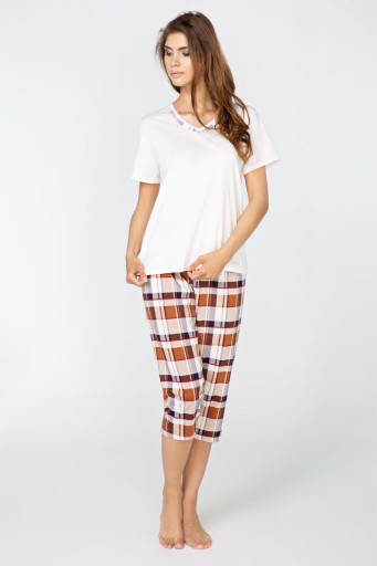 Dwuczęściowa piżama damska z krótkim rękawkiem i 3/4 spodniami.