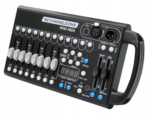 Kompaktowy, przenośny 192-kanałowy kontroler DMX do stosowania w systemach oświetleniowych z maksymalnie 12 lampami sterowanymi DMX. Kontroler może sterować 12 efektami świetlnymi za pośrednictwem do 16 kanałów DMX każdy. Sterownik posiada do tego celu 8 suwaków, kanały podzielone są na 2 strony.