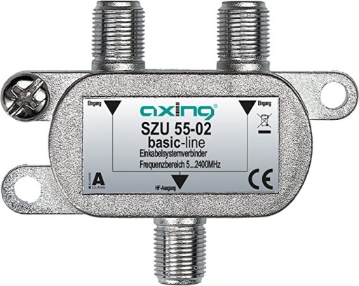 Sumator sygnału satelitarnego Axing SZU 55-02 umożliwia zsumowanie dwóch sygnałów, np. z dwóch konwerterów / multiswitchy Unicable (Astra + Hotbird) i przesłanie jednym przewodem sygnału do odbiornika.