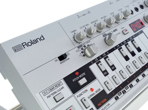 Klasyczne brzmienie syntezatora TB-303 w dłoni.