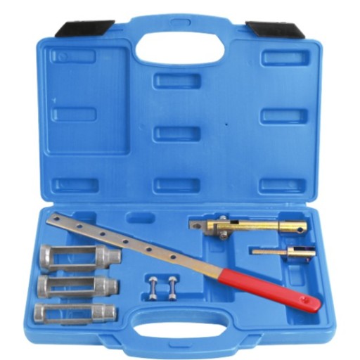Dźwignia do ściskania sprężyn zaworowych z zestawem trzech różnych końcówek montażowych. Przyrząd znajduje zastosowanie w silnikach 8V, 12V 16V.