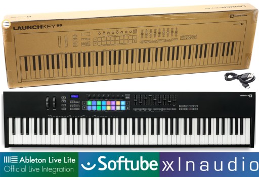 Novation Launchkey 88 Mk3 to w pełni zintegrowany kontroler MIDI z pełnowymiarową klawiaturą do tworzenia utworów w Ableton Live, Logic Pro, Cubase i nie tylko. Zaprojektowany, aby zapewnić Ci wszystko potrzebujesz do tworzenia i odtwarzania Twojej muzyki.