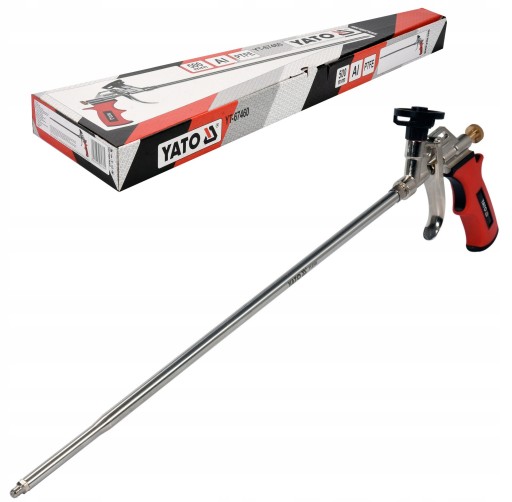 Pistolet marki YATO do pianki montażowej z długą 50-centymetrową lancą do aplikacji.