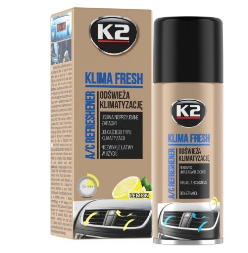 Środek usuwający nieprzyjemny zapach z klimatyzacji. Po użyciu pozostawia przyjemny, cytrynowy zapach. Nadaje się do stosowania w każdego rodzaju klimatyzacji.