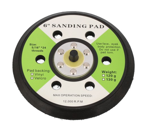 Dysk uniwersalny pasuje do większości szlifierek pneumatycznych. Średnica dysku 150mm, posiada 6 otworów pozwalających odsys pyłu powstającego podczas szlifowania.