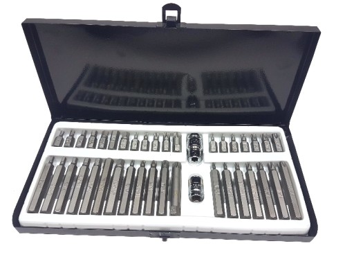- Profesjonalny 40 elementowy zestaw bitów, służący do odkręcania śrub specjalnych typu: hex, torx, spline.