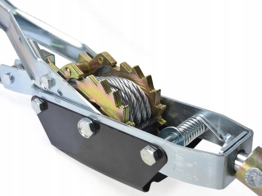 Wyciągarka została wykonana z wysokiej jakości materiałów o odpowiedniej trwałości - stal konstrukcyjna, odlewane haki ze sprężynami zwrotnymi.