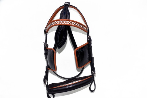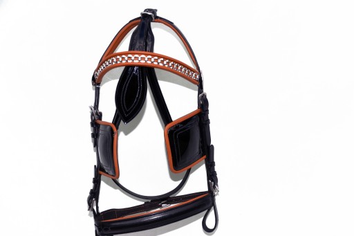 Ogłowie zaprzęgowe z okularami roz. FULL Ogłowie wykonane w całości ze skóry licowej ,wszystkie okucia i sprzączki wykonane ze stali nie szlachetnej ,ogłowie zdobione .