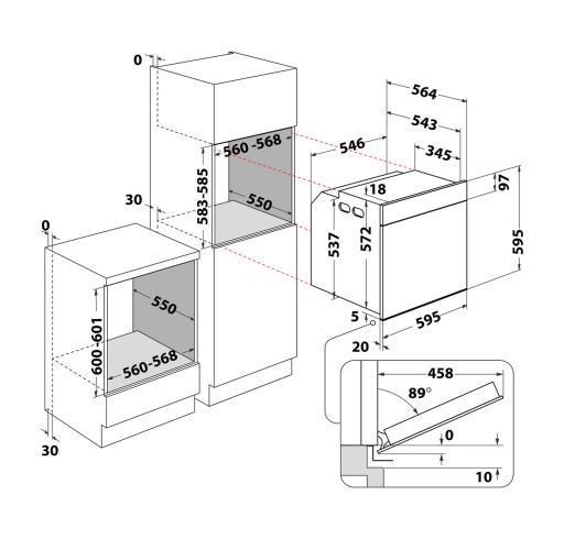 - Sposób otwierania drzwi: Opuszczany front z uchwytem