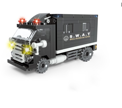 Ogromny helikopter Black Hawk to jedna z najbardziej imponujących części zestawu klocków policyjnych SWAT. Posiada on wiele ciekawych detali, takich jak otwierane drzwi, ruchome śmigła czy wiele elementów opancerzenia. Dzięki temu może służyć jako wsparcie dla działań policji w sytuacjach kryzysowych, umożliwiając transport funkcjonariuszy, przewożenie sprzętu i zapewnienie wsparcia ogniowego.