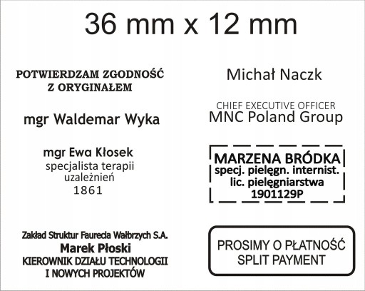 6) Wykonanie gumek, pieczątek z tytułami zawodowymi lub naukowymi oraz świadczących o pełnieniu jakichś funkcji wymaga dostarczenia do nas skanem stosownych potwierdzeń