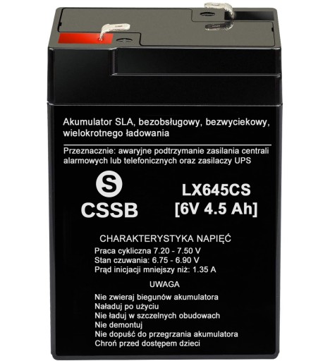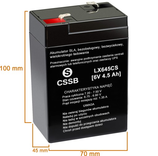- Napięcie nominalne: 6 V