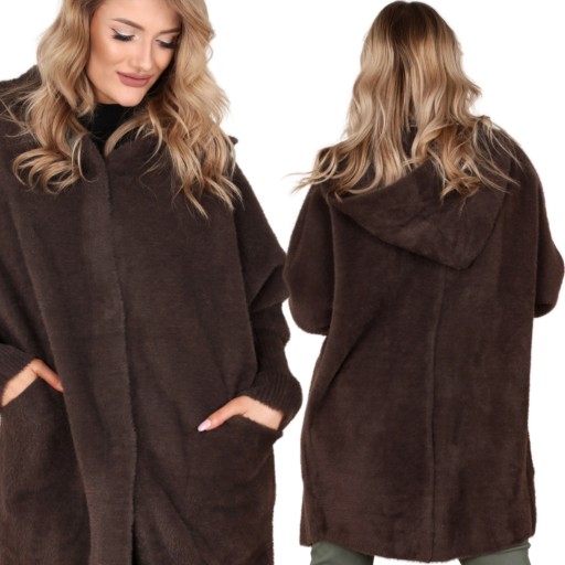 ПАЛЬТО ЖЕНСКОЕ КУРТКА ИЗ АЛЬПАКИ СВИТЕР ТЕПЛЫЙ ДЛИННЫЙ КАПЮШОН НА МОЛНИИ КОРИЧНЕВЫЙ 1946 г.
