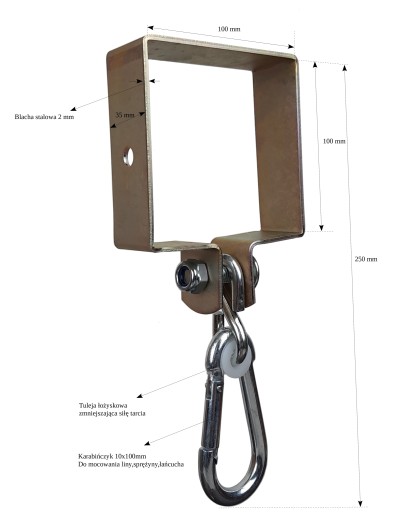 Obejma do mocowania huśtawki kwadratowa z karabińczykiem 100x100 mm