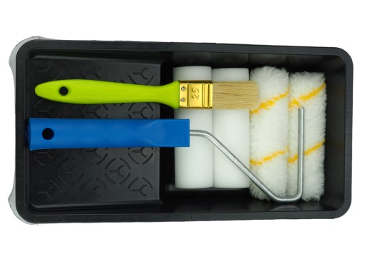- Ponadto produkt zapewnia efektywniejsze i szybsze pokrycie ścian niż pędzel – nie gubi włosia tak jak pędzel i pozostawia dokładne pokrycie farbą.