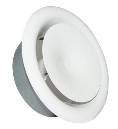 Obrotowy talerzyk anemostatu umożliwia płynną regulację natężenia przepływu powietrza.