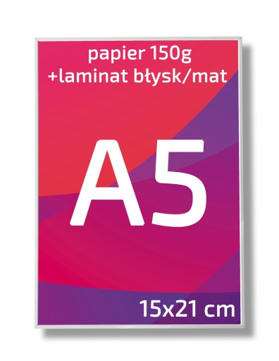 WYDRUK PLAKATU NA PAPIERZE PÓŁMATOWYM 150g O ROZMIARZE A5 15x21cm WRAZ Z LAMINOWANIEM MAT LUB BŁYSK