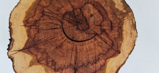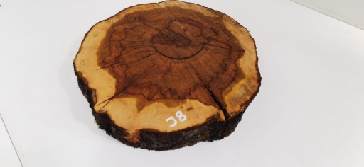 Zdjęcia robimy od razu po przecięciu, żeby jak najlepiej pokazać w jaki sposób można wyprowadzić plaster i podkreślić jego strukturę. W procesie suszenia naturalną rzeczą są pęknięcia materiału powstałe w skutek oddawania wilgoci oraz powierzchowna zmiana barwy. Jedno ze zdjęć pokazuje aktualny stan plastra z początku sierpnia.