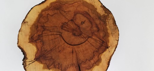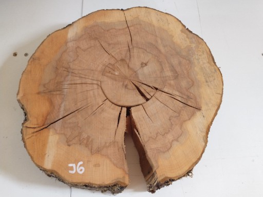 Zdjęcia robimy od razu po przecięciu, żeby jak najlepiej pokazać w jaki sposób można wyprowadzić plaster i podkreślić jego strukturę. W procesie suszenia naturalną rzeczą są pęknięcia materiału powstałe w skutek oddawania wilgoci oraz powierzchowna zmiana barwy. Jedno ze zdjęć pokazuje aktualny stan plastra z początku sierpnia.