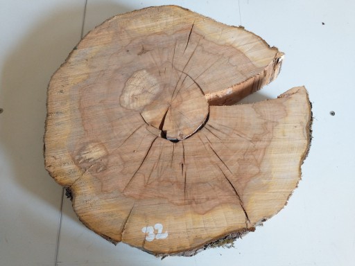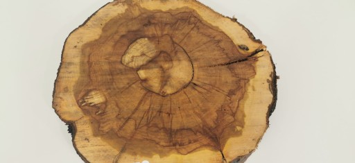Zdjęcia robimy od razu po przecięciu, żeby jak najlepiej pokazać w jaki sposób można wyprowadzić plaster i podkreślić jego strukturę. W procesie suszenia naturalną rzeczą są pęknięcia materiału powstałe w skutek oddawania wilgoci oraz powierzchowna zmiana barwy. Jedno ze zdjęć pokazuje aktualny stan plastra z początku sierpnia.