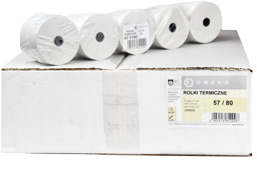 Rolki termiczne do kas fiskalnych i terminali płatniczych o szerokości 57 mm i długości 80 m.