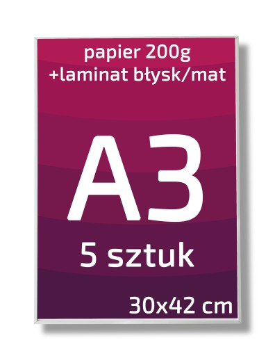WYDRUK PLAKATU NA PAPIERZE 200g O ROZMIARZE A3 30x42cm WRAZ Z LAMINOWANIEM MAT LUB BŁYSK