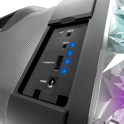 - Zsynchronizowany pokaz świetlny - rozkręć imprezę w kalejdoskopie obrazu i dźwięku, emituje kolorowe światła, które pulsują w rytm muzyki