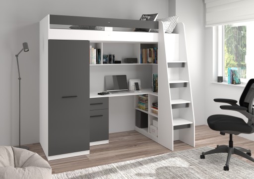 3. Nowoczesna kolorystyka pozwalające na dopasowanie tego łóżka piętrowego do wielu rodzająów pomieszczeń.
