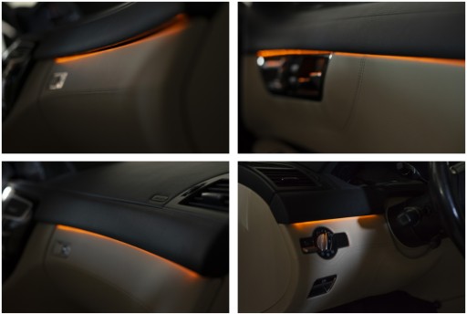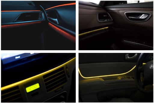 - Dzięki niewielkim wymiarom taśmę LED można bez problemu zamontować w dowolnym rowku kokpitu, w drzwiach, pod siedzeniami itp.