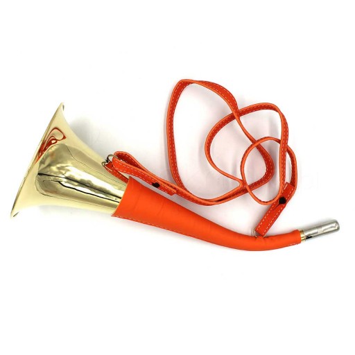 Trąbka myśliwska została wyprodukowana w Pakistanie, wykonana z wysokiej jakości mosiądzu, owinięta skórą w kolorze pomarańczowym. Wersja PREMIUM - wykonanie bardzo precyzyjne, z dbałością o najmniejszy szczegół.