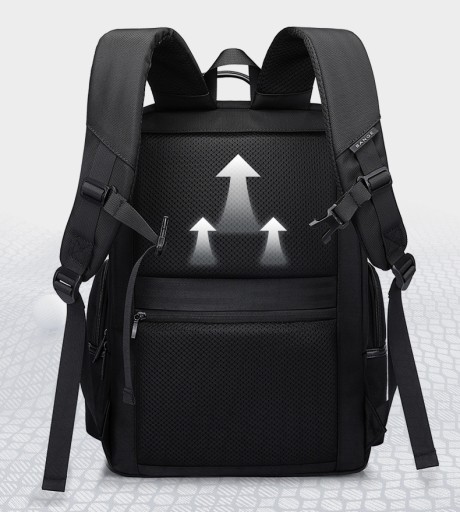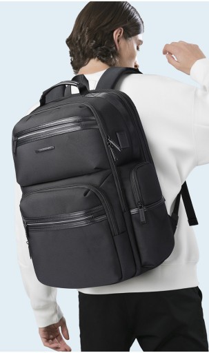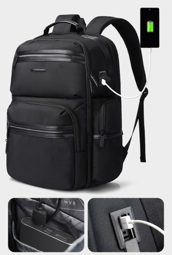 Bardzo pojemny i świetnie zorganizowany, trzykomorowy plecak marki Bange o symbolu BG-2601, pomieści laptopa w rozmiarze do 17,3 oraz ubrania na krótki wyjazd. Wykonany został z wytrzymałego i impregnowanego nylonu, który ochroni zawartość plecaka przed warunkami atmosferycznymi. W pierwszej komorze z tyłu umieszczono kieszeń na laptopa w rozmiarze do 17,3 oraz kieszeń na tablet, obie zapinane na elastyczny pasek z rzepem. W drugiej komorze, z przodu plecaka, wyznaczono miejsce na zapakowanie ubrań, które można spiąć elastycznymi paskami, aby się nie przesuwały. Znajdują się tutaj również trzy kieszonki na drobne rzeczy, zapinane na wodoodporne zamki. Z przodu plecaka umieszczone są trzy kieszenie na podręczne rzeczy, jedna z nich zawiera organizer na akcesoria i długopisy. Po bokach plecaka znajdują się mniejsze ( zapinane na zamek) kieszenie na napój, parasolkę lub podręczne rzeczy. Z lewej strony plecaka umieszczono zewnętrzne złącze USB, dzięki czemu nie ma konieczności wyciągania power banka z plecaka, aby naładować telefon lub inne przenośne urządzenie. Złącze jest zamykane na klapkę, dzięki czemu jest chronione przed zamoknięciem. U góry plecaka znajduje się solidny uchwyt do wygodnego przenoszenia go w ręce nawet przy dużym obciążeniu. Szelki plecaka są wyprofilowane i solidnie uszyte, oraz spinane dodatkowym paskiem, aby lepiej rozłożyć ciężar przy maksymalnym zapakowaniu plecaka. Tył plecaka i szelki są wyłożone miękkimi gąbkami, dzięki czemu jest on wygodny w noszeniu. Na tylnej ścianie plecaka znajduje się również bezpieczna kieszeń na portfel lub telefon oraz nylonowy pas, dzięki któremu można założyć plecak na rączkę torby lotniczej. Bange BG-2601 to bardzo pojemny plecak, który z pewnością doskonale sprawdzi się w pracy, jak i w kilkudniowej podróży.