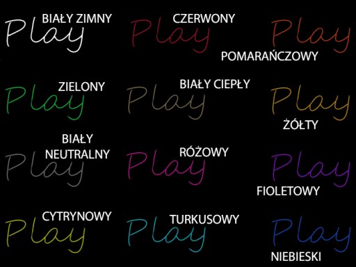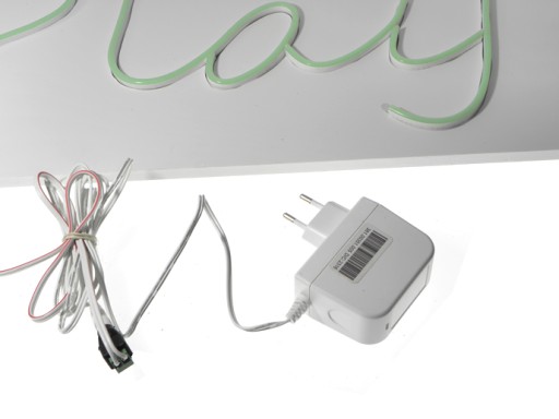 Napis PLAY wykonana z neonu LED FLEX. Neon umieszczony jest na płycie PCV w kolorze białym w specjalnie wyfrezowanych do tego celu rowkach. W komplecie zasilacz. Wystarczy całość podłączyć do sieci 230V. Bardzo dobre na prezent. Może służyć jako ozdoba pomieszczeń. Łatwo przymocować je do ściany, powiesić lub postawić na stoliku.