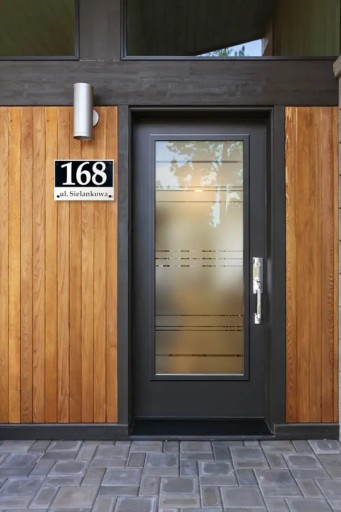 Tabliczka z numerem domu to niewątpliwie dobra okazja, aby w sposób oryginalny upiększyć elewacje naszego domu. Tym razem oferujemy piękną tablicę adresową, której podstawę stanowi aluminiowa płyta typu dibond w kolorze czarnym. Na czarnych dystansach montażowych zamontowaliśmy plexi transparentną a na niej umieszczamy personalizowany adres wykonany ze śnieżno białej plexi 3mm. Całość tworzy fantastyczną kompozycje dając efekt trójwymiarowy. Ta kombinacja kolorystyczna doskonale skomponuje się z ciemniejszymi elewacjami. Doskonale sprawdzi się na białej elewacji domu z czarnymi lub szarymi wykończeniami (np. czarny dach, grafitowe drzwi wejściowe).