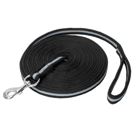 Lonża wykonana z miękkiego materiału nylonowego. Wyposażona w obrotowy karabińczyk.