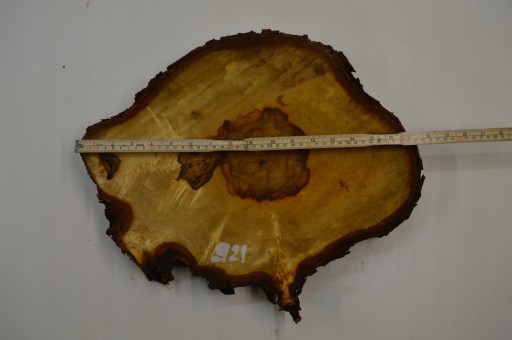 Zdjęcia robimy od razu po przecięciu, żeby jak najlepiej pokazać w jaki sposób można wyprowadzić plaster i podkreślić jego strukturę. W procesie suszenia naturalną rzeczą są pęknięcia materiału powstałe w skutek oddawania wilgoci oraz powierzchowna zmiana barwy. Jedno ze zdjęć pokazuje aktualny stan plastra z początku sierpnia.