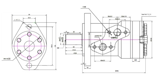 Silnik hydrauliczny orbitalny (gerotorowy) o chłonności 50 cm³/obr., z przyłączami G ½”, SAE A. Wałek prosty o średnicy Ø25x40mm z klinem. Posiadamy również na innych aukcjach tulejki przeznaczone do wspawania na wałek, kołnierze mocujące czy też sprzęgła na wałek silnika.