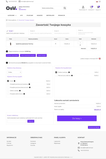 - dostępne różne formy płatności elektronicznych – wystarczy mieć podpisaną umowę operatorem i włączyć moduł w sklepie,