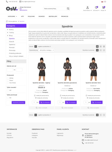 - listowanie wszystkich produktów oraz definiowanie filtrów zawężających wyniki (wg cech, dodatkowych pól, dostępności produktów, czasu wysyłki, producenta, kategorii),
