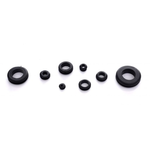 Przelotki gumowe służbą do zmniejszania średnicy otworów, osłony ostrych krawędzi otworów przez przecięciem przewodów.