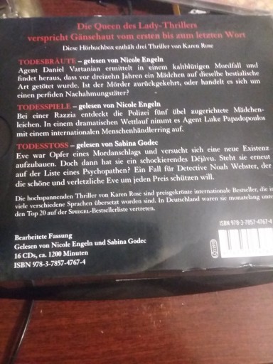 Niektóre płyty mają mikroryski od wyciągania z kartonika, poligrafia w ładnym stanie. Audiobook w języku niemieckim.
