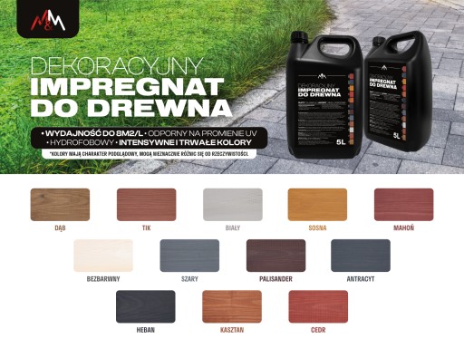 Przedmiotem sprzedaży jest wysokiej jakości Impregnat do drewna M&M 10l (2x5l) - do wyboru 12 kolorów - po zakupie proszę o informację o wybranym kolorze w wiadomości do sprzedającego