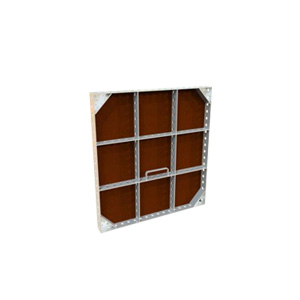 Dzięki wewnętrznej kratownicy składającej się z płaskowników połączonych na zacięcie konstrukcja płyty jest mocniejsza. Rama zabudowana jest wysokiej jakości sklejką brzozową – wodoodporną, laminowaną, o grubości 12mm. W rogach płyty (poza wymiarem: 20×90 i 25×90) umieszczone są otwory na ściągi. Profile skrajne ramy oraz żebra pośrednie są perforowane. Mają otwory co 5cm, dzięki czemu można łączyć sąsiadujące płyty z przesunięciem na wysokości i szerokości.