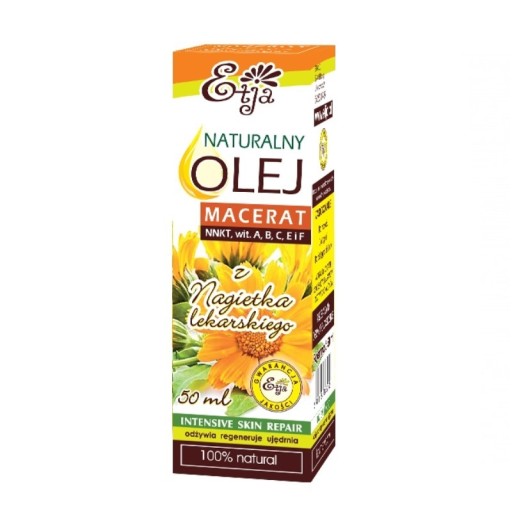 Najwyższej jakości macerat otrzymany w wyniku maceracji kwiatów nagietka lekarskiego w zimnotłoczonym oleju słonecznikowym BIO (1:3). Zawiera kwasy tłuszczowe, minerały, beta-karoten oraz witaminy A, B, C, E i F. Zwiększa elastyczność, wygładza, nawilża, działa przeciwzapalnie i regeneruje zniszczoną skórę. Łatwo się wchłania, pozostawiając cerę miękką, gładką i odświeżoną. Zalecany do pielęgnacji skóry szorstkiej, popękanej, także zniszczonej na skutek odmrożeń czy oparzeń. Nadaje się też do pielęgnacji cery skłonnej do infekcji, zaczerwienienia i pękania. Ze względu na wysoką zawartość witaminy E oraz kwasu linolowego w oleju słonecznikowym, macerat posiada działanie antyoksydacyjne i przeciwtrądzikowe.