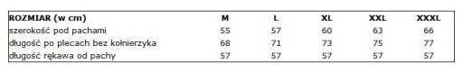 Jeżeli Twoje wymiary wypadną pomiędzy dwoma rozmiarami wybierz rozmiar mniejszy jeżeli wolisz bardziej przylegającą odzież lub większy jeżeli wolisz luźniejszą.