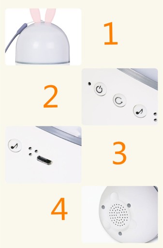 8 rodzajów muzyki: Naciśnij przycisk obrotu, aby obrócić projekcję. Naciśnij przycisk przełączania muzyki, aby odtwarzać cichą i relaksującą muzykę. 8 różnych stylów muzycznych przeniesie Cię w poruszający się bajkowy świat fantasy. Lampkę nocną LED można obracać o 360 stopni, zapewniając szokujące i żywe efekty wizualne i słuchowe.