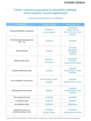 - Powoduje wzrost przejrzystości wody i likwiduje nieprzyjemne zapachy;